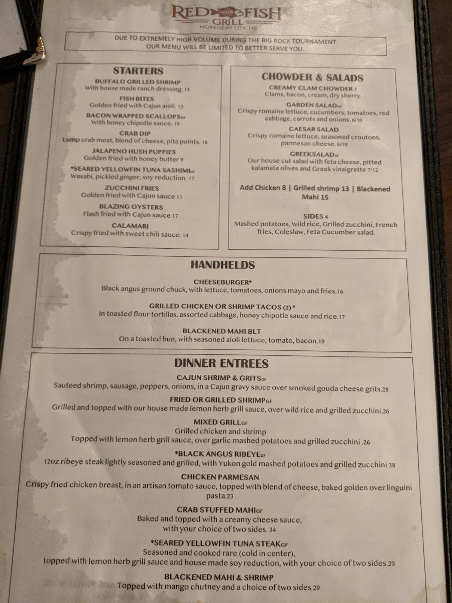 Welcome to RedFish Grill & Bar, a culinary gem nestled in Morehead City, NC. This vibrant eatery offers a diverse menu featuring fresh seafood and classic American fare. Start with their Creamy Clam Chowder or a crisp Caesar Salad. For the main event, indulge in their signature Fried Shrimp or the Stuffed Flounder, both raved about by satisfied customers. The Mahi BLT and delectable tacos are must-tries, catering to diverse palates.